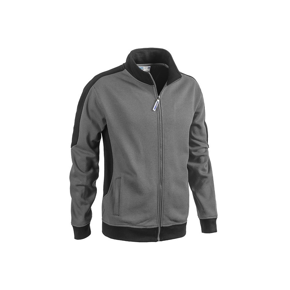 Felpa realizzata in tessuto 65% cotone e 35% poliestere, con chiusura zip a tutto corpo e fascia parasudore interna al collo.
