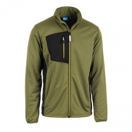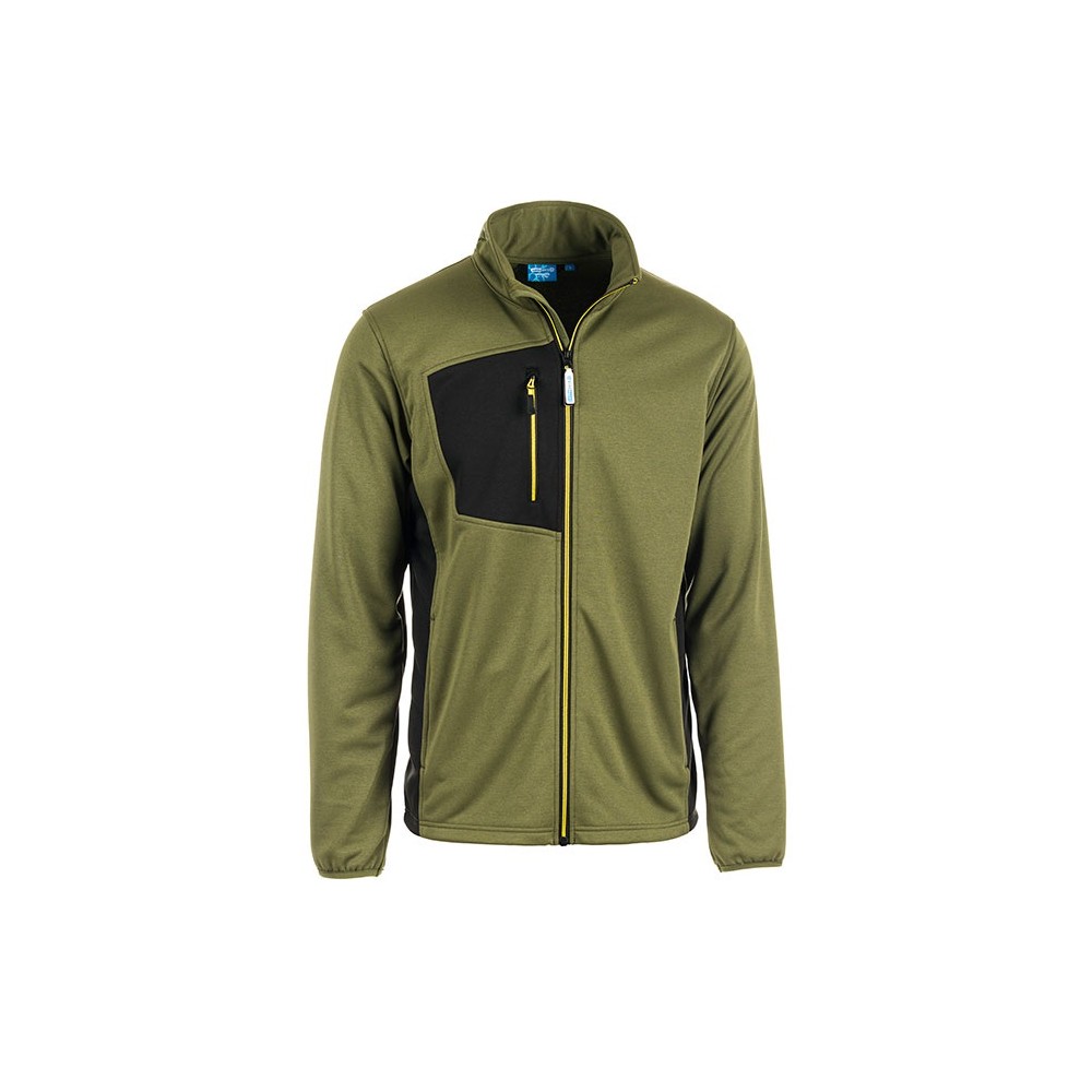 Tasca sul petto lato destro con cerniera, due tasche laterali con cerniera, polsini con elastico morbido.