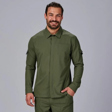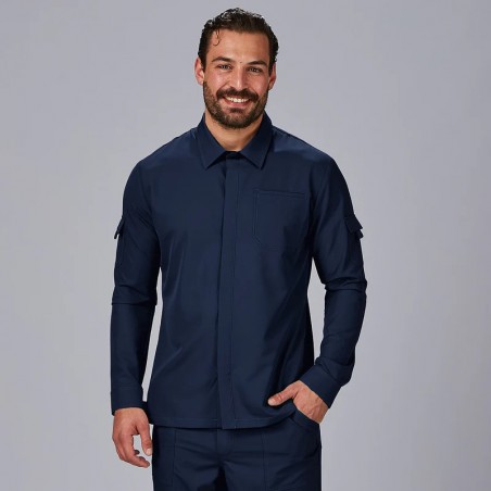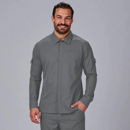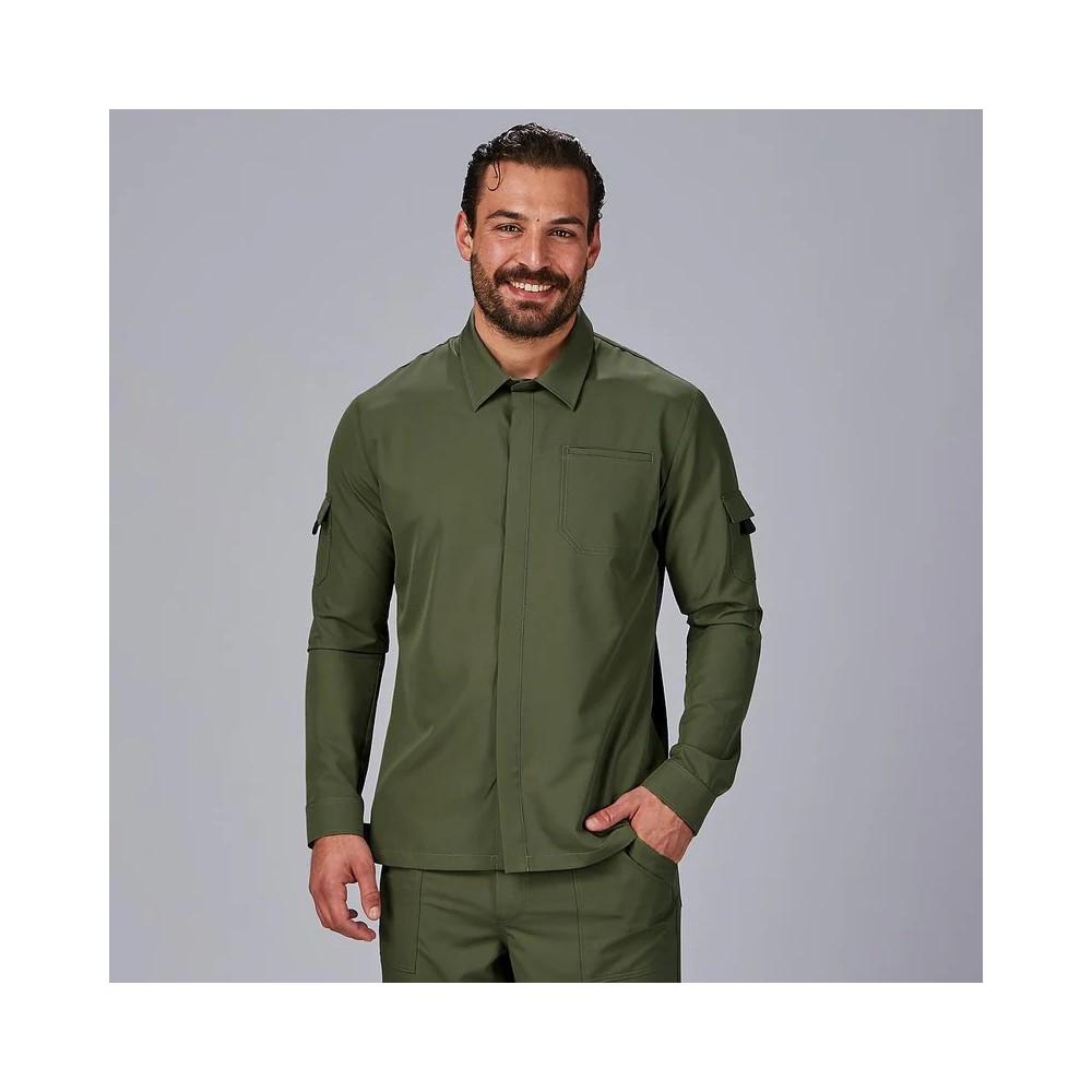 Realizzata in tessuto PIXIE (92% poliestere, 8% elastan - 155 gr/m²), questa giacca è leggera, traspirante e ad asciugatura rapida, perfetta per le lunghe giornate di lavoro. I pannelli a coste sui lati e sulla schiena assicurano una vestibilità ergonomica, favorendo la mobilità in ogni momento. La chiusura con bottoni a pressione nascosti offre una finitura pulita e professionale, mentre il colletto a camicia aggiunge un tocco classico ed elegante.
