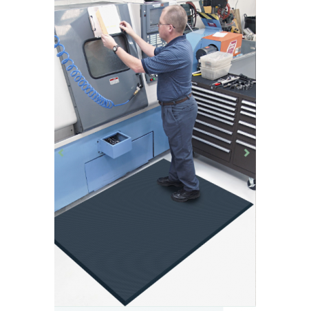 Tappeto antifatica ergonomico di alta qualità, progettato per ambienti asciutti o umidi. Realizzato in schiuma di gomma miscelata con nitrile, a cellule chiuse ad alta densità, da 16 mm di spessore.