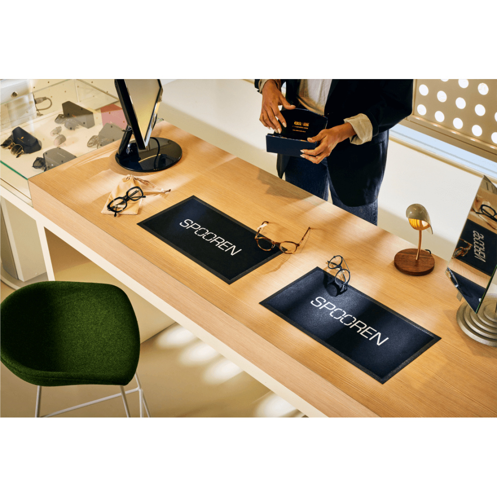 Tappetino da banco realizzato in nitrile con superficie in poliestere lavorato a maglia, antipilling, completamente personalizzabile, con design di qualità fotografica.
