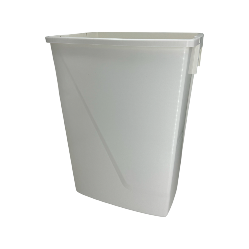 Pattumiera realizzata in moplen, colore bianco da usare sia come cestino getta carta, sia come contenitore generico.