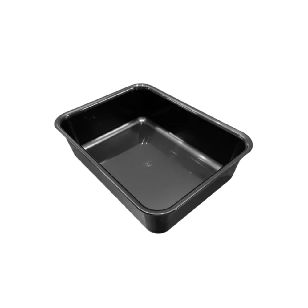 Vassoio in PMMA (metacrilato), materiale molto resistente, non assorbe odori e liquidi, con bordo alto 3,5 cm. Idoneo al contatto con gli alimenti ed utilizzabile in forno a microonde. Non riscaldare su fiamma o irraggiare con lampada infrarossi. Questo vassoio è nato per esporre carne, tramezzini, paste, pasticcini su banchi di macellai, bar, ristoranti, pizzerie, etc..Dotato di guide rinforzate sul fondo che aiutano la corretta circolazione dell'aria, può essere inserito in frighi, celle a temperature di esercizio non al di sotto di -10°C e può essere utilizzato in microonde fino a temperatura massima di + 80°C. E' lavabile in lavastoviglie a temperatura max di 60°C.