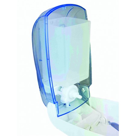 Dispenser per sapone liquido con vaschetta a riempimento, capacità ml 1000 . Erogazione a pulsante.