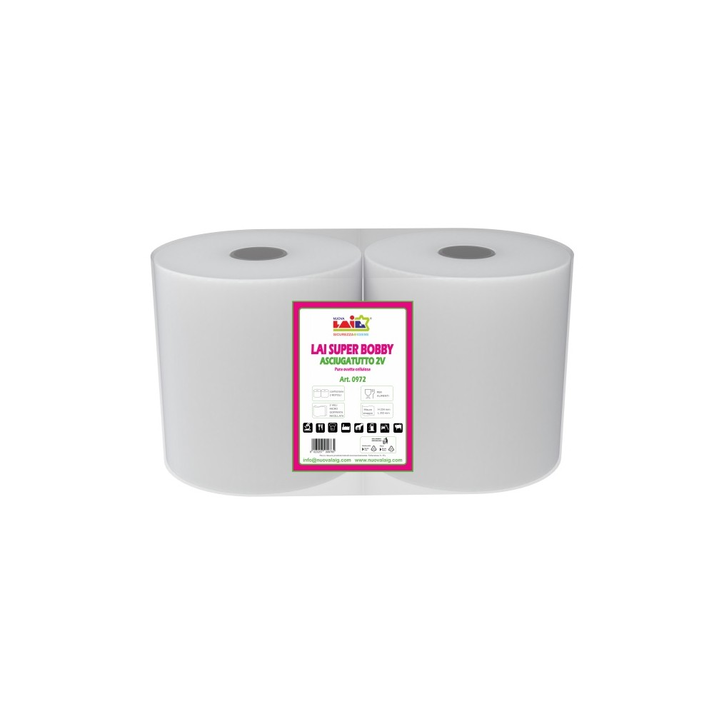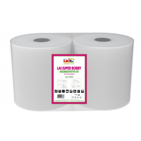 Carta 100% pura cellulosa 2 veli, micro goffrata incollata. Questo tipo di carta è molto assorbente, va usato come asciugatutto. Ideale per tutti i settori, anche quello alimentare.