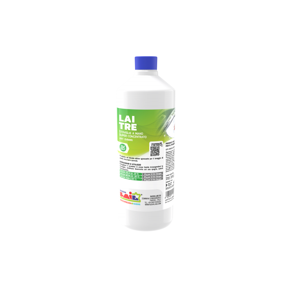 Lai Tre è un detersivo liquido neutro, altamente schiumogeno e altamente concentrato , ricco di sostanze dermoprotettive per il lavaggio manuale di stoviglie. E’ efficace anche con acque dure.