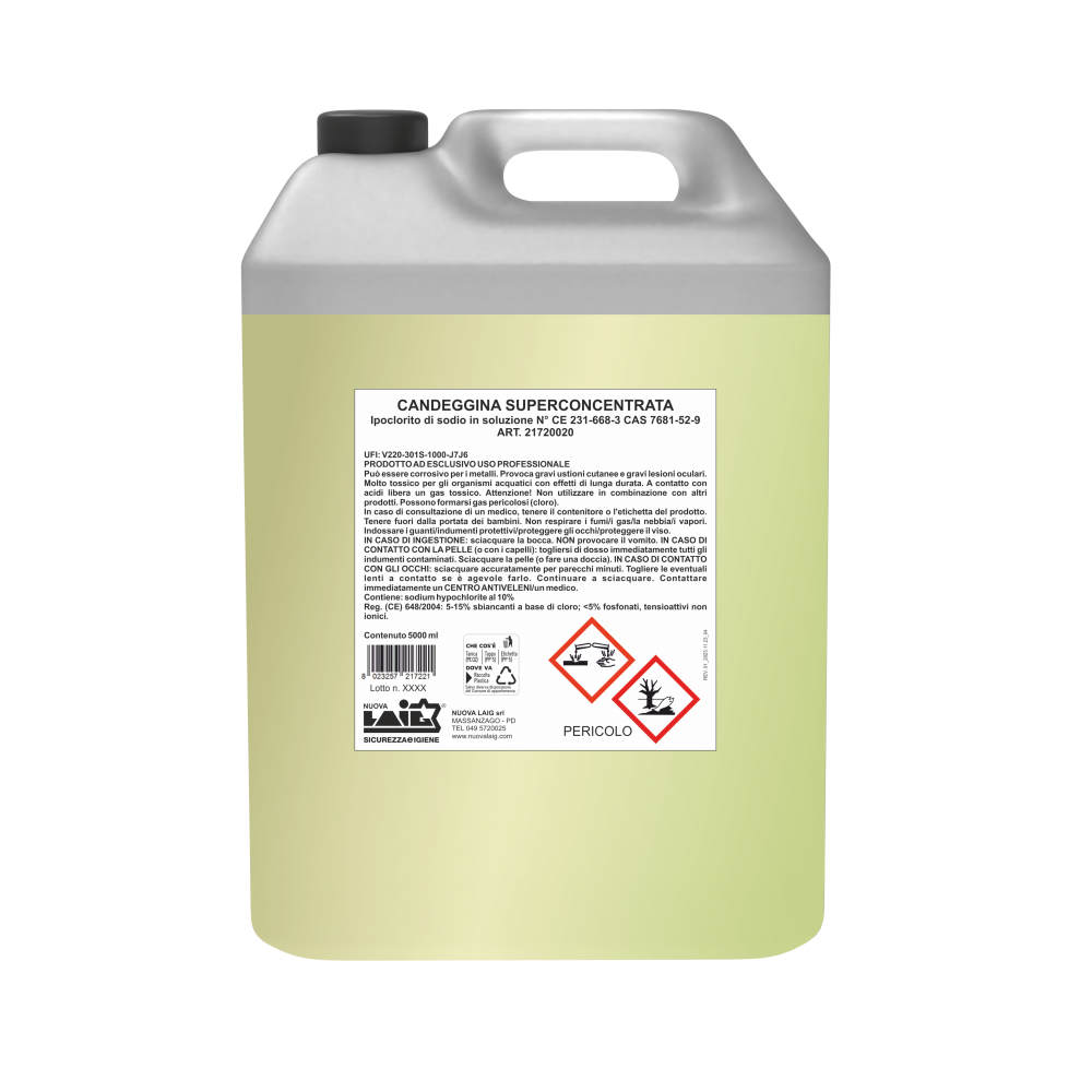 Diluire in acqua fredda, dal 4 al 8%. In caso si necessiti il risciacquo (superfici a contatto con alimenti), attendere qualche minuto prima di effettuarlo, onde consentire la completa igienizzazione e azione sbiancante.