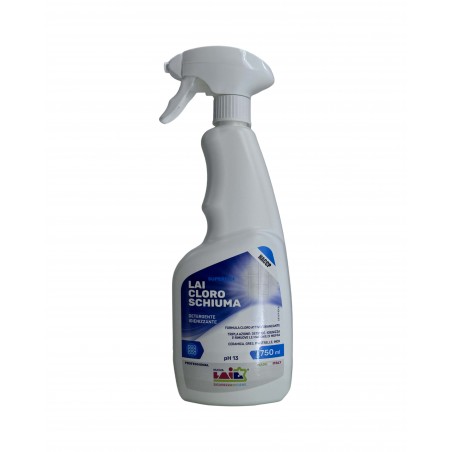 Schiuma attiva pronta all'uso a base di cloro, particolarmente indicata per la pulizia della stanza da bagno : sanitari, piastrelle e tutte le superfici dure in genere.
