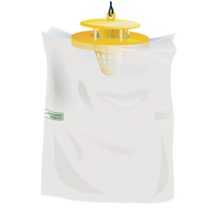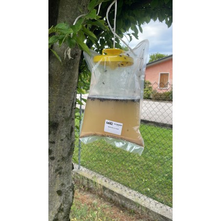 Questa trappola permette di catturare fino a 40.000 mosche. Facile da applicare ed è dotata di esca biologica che la rende fortemente attrattiva per le mosche. Non contiene veleno.