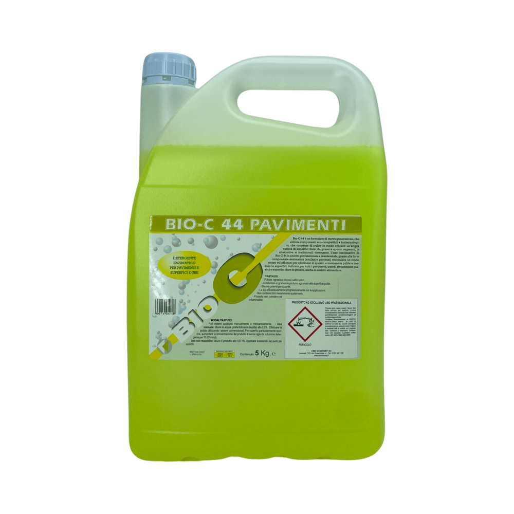 Bio-C 44 è un formulato di nuova generazione che abbina componenti eco-compatibili e biotecnologici, che consente di pulire in modo efficace un'ampia varietà di superfici dure, da grassi a sporco organico, in alternativa ai tradizionali detergenti.