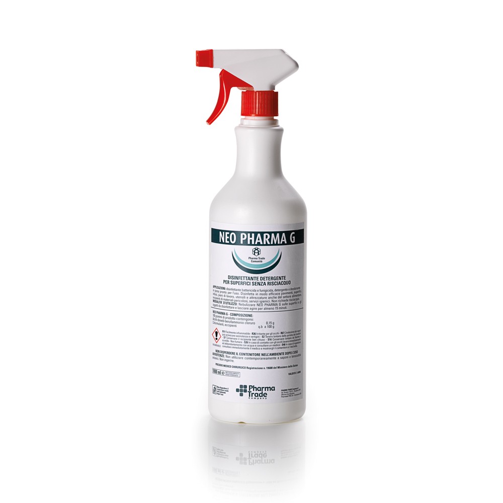 Neo Pharma G contiene tensioattivi ad elevato spettro detergente e alcool etilico ad azione solvente. Elimina radicalmente i microrganismi che provocano cattivi odori.