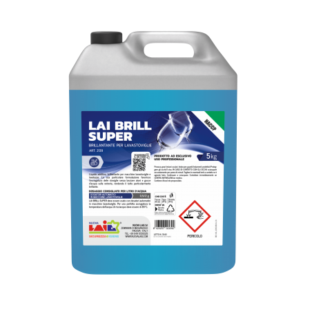 Caratteristica primaria di Lai Brill Super è di "rompere" il film superficiale liquido che si forma sulle superfici facilitandone l'asciugatura e la brillantezza caratteristica dei materiali vetrosi, ceramici o speculari in genere.