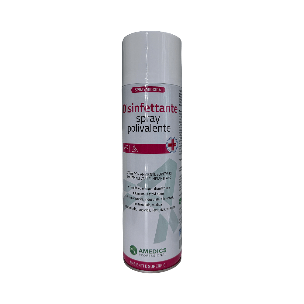Spray disinfettante e deodorante : elimina batteri, legionella compresa, muffe e funghi dalle superfici, oggetti, muri, pareti e impianti di condizionamento.