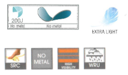 Suola : bidensità antistatica, resistente all'idrolisi, agli idrocarburi e all'abrasione, antishock e antiscivolo SRC