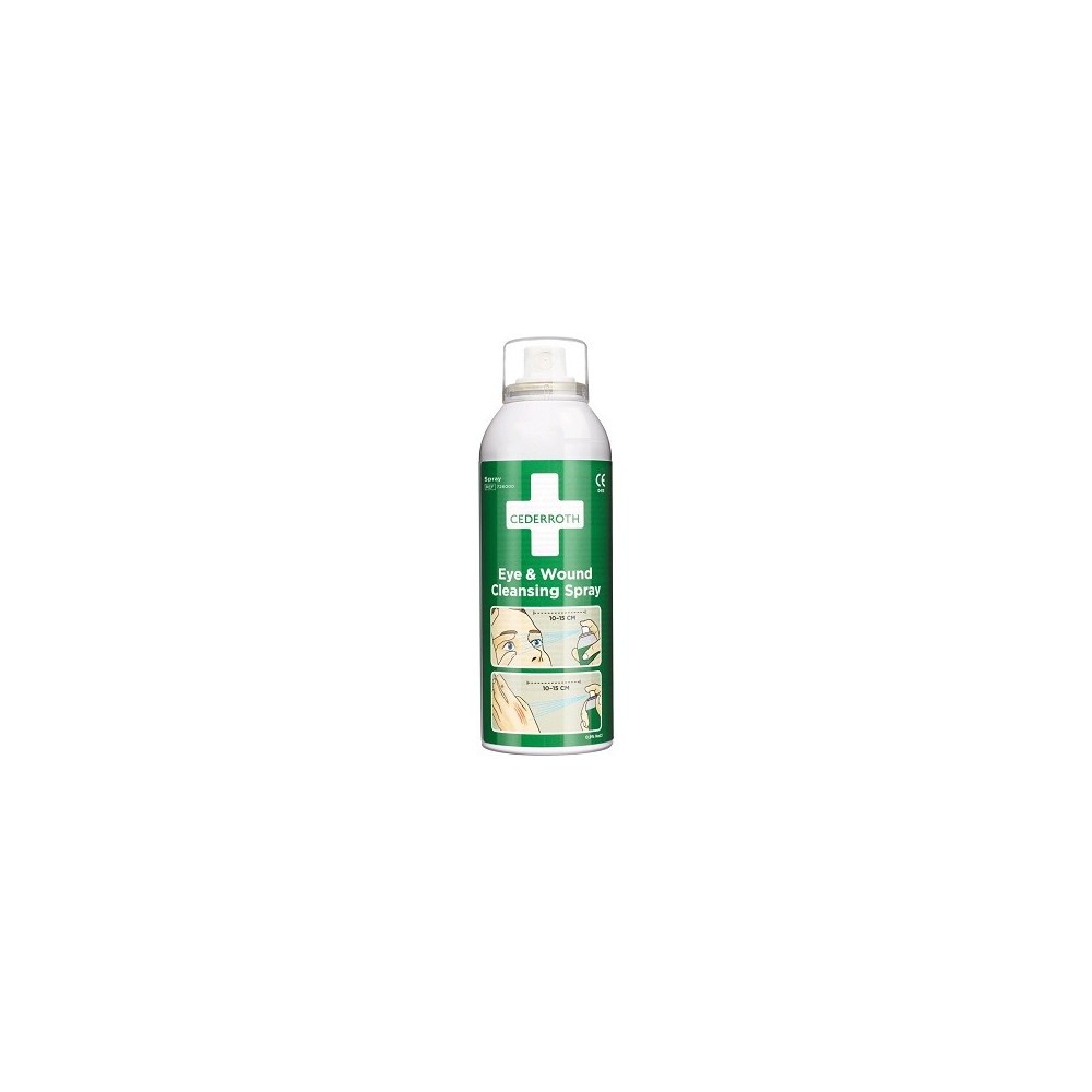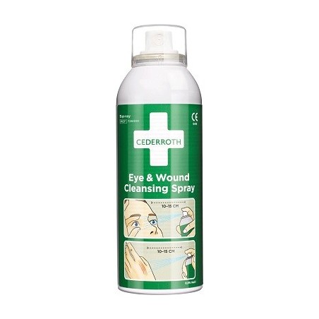 Spray per il risciacquo e la pulizia di polvere e sporco, da occhi e ferite del corpo. Lo spray risciacqua e rimuove polvere e sporcizia.