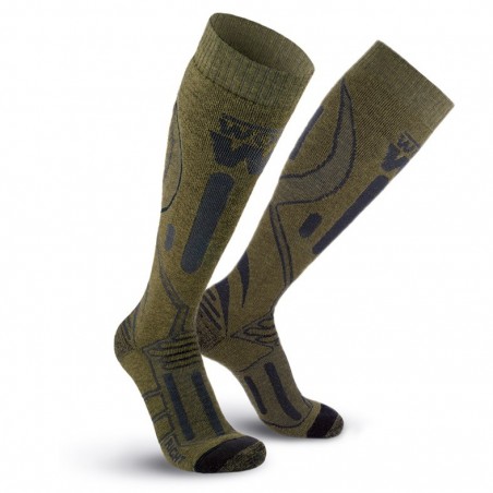 Calza tecnica invernale realizzata in lana merino 40%, in grado di mantenere un clima caldo ed asciutto nelle situazioni lavorative più estreme.