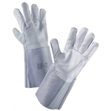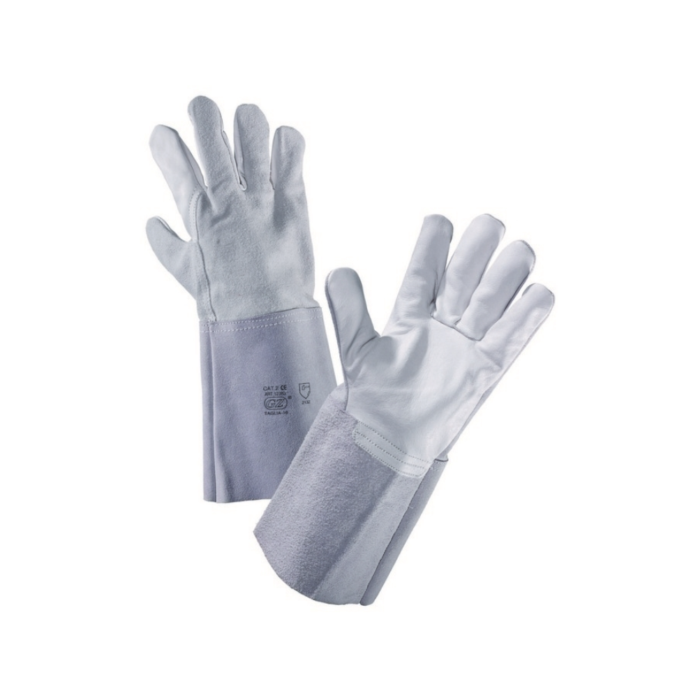 Guanto con palmo in pelle fiore di prima qualità. Dorso e manichetta in crosta, manichetta 15 cm. La lunghezza totale del guanto è di 35 cm e le cuciture sono completamente in filo nylon. Idoneo per lavori di saldatura, industria in genere, lavorazione ceramica, edilizia, agricoltura, hobbistica.
