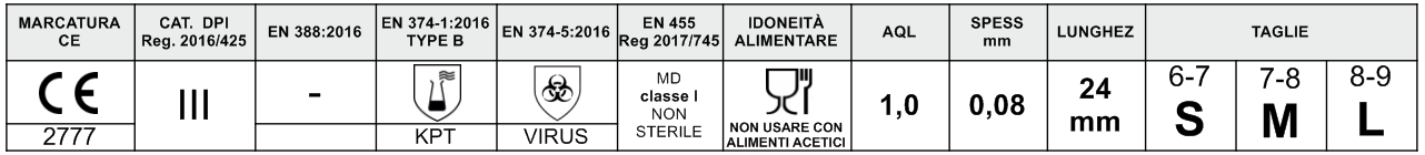 Adatto all'uso alimentare, conforme all'uso in campo medicale (non sterile).